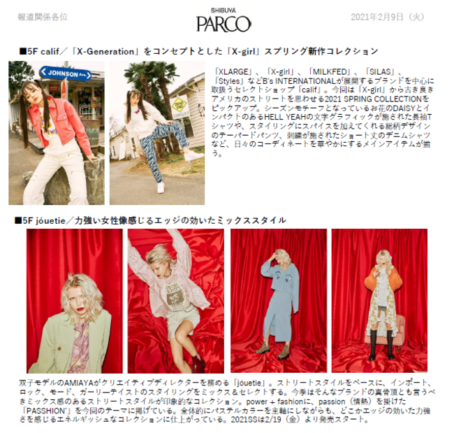 ●渋谷PARCOの春のファッションキャンペーン。ファッション、コスメ店舗にて春の新作アイテムが発売。